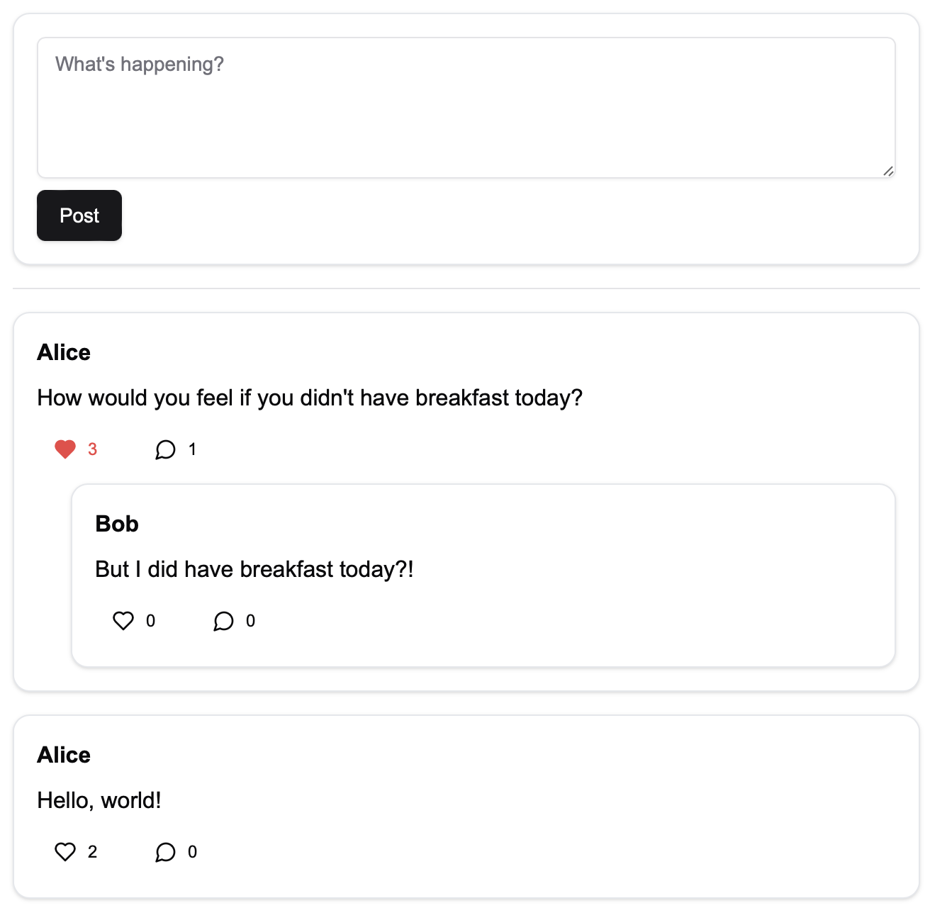 One writes a pure function of the append-only log to define the user-interface. Since writing UI code is annoying, in this prototype you can prompt Claude to create the frontend for you. It has the special ability to wrap React code in <React>...</React> tags and access to the useAgweQuery, and useAgweDerived hooks as-well-as the agweExecute function, to interact with the substrate -- each example has some UI code pre-generated. Be warned that it takes some faffing around with Claude to get the UI looking reasonable.